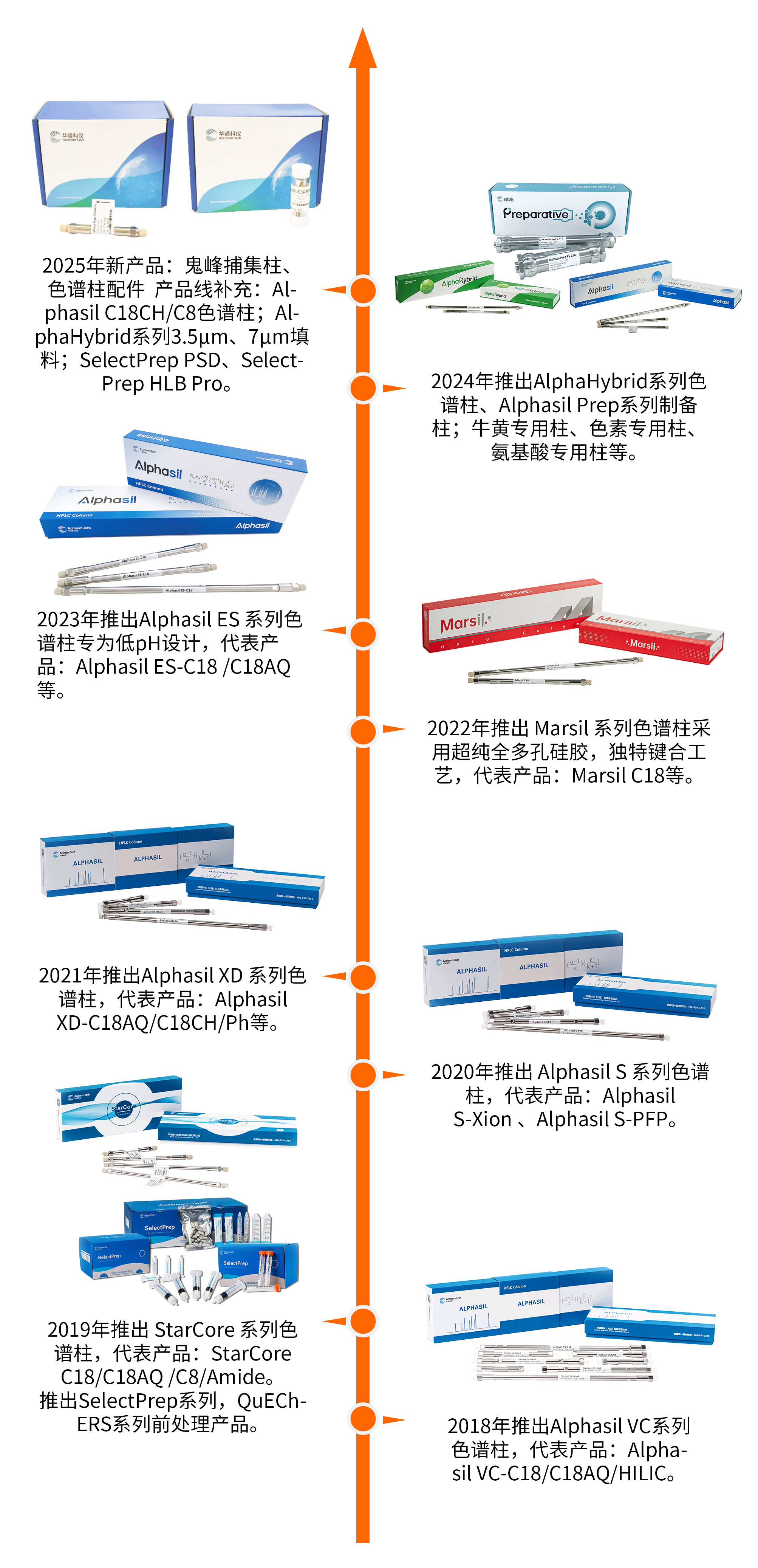 华谱科仪在色谱柱领域坚持自主创新,已形成Alphasil、AlphaHybrid、Marsil与StarCore四大产品系列,全面覆盖食品、药品、饲料等行业分析需求。其中,AlphaHybrid C18杂化硅胶色谱柱凭借自主研发的杂化硅胶基球与键合技术,pH耐受性与国际品牌表现一致,在实际应用中展现出与国际品牌媲美的分离效果,广受客户好评。