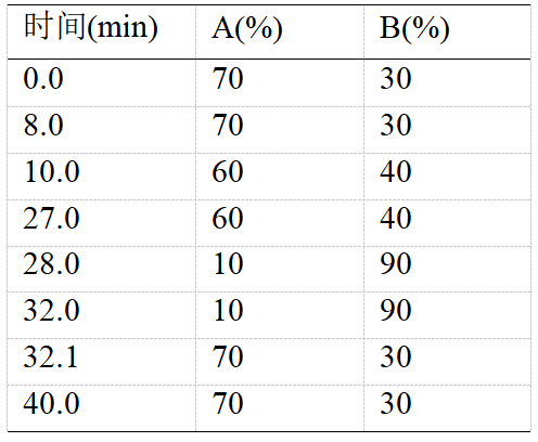 流动相:A:0.1%磷酸-水溶液;B:乙腈;