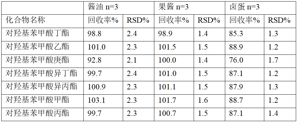 参考《GB5009.31-2025 食品安全国家标准 食品中对羟基苯甲酸酯类化合物的测定》结合Alphasil VC-C18,4.6×150 mm,3.5 μm和SelectPrep MAX 500 mg/6 mL固相萃取耗材对食品中对羟基苯甲酸酯类化合物进行测定,回收结果符合标准要求。