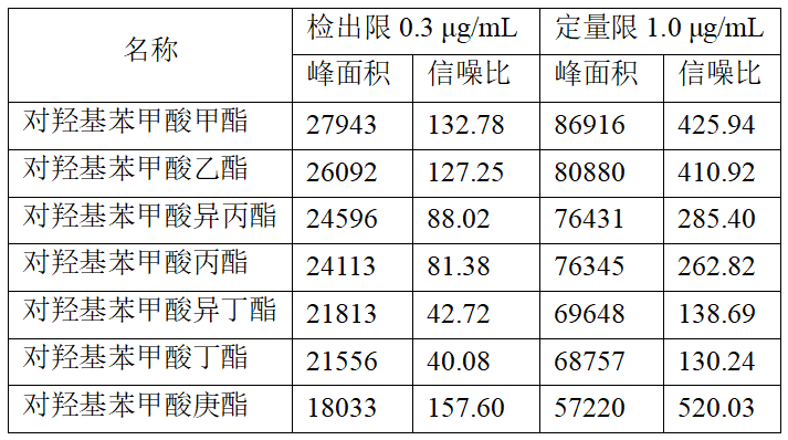 (1-对羟基苯甲酸甲酯;2-对羟基苯甲酸乙酯;3-对羟基苯甲酸异丙酯;4-对羟基苯甲酸丙酯;5-对羟基苯甲酸异丁酯;6-对羟基苯甲酸丁酯;7-对羟基苯甲酸庚酯)