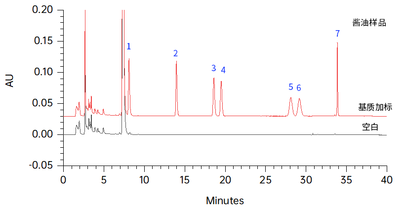 对羟基苯甲酸酯类是常用食品防腐剂,安全性较高、抑菌效果好,但若大量或不正当使用,可能对人体健康造成一定危害。《GB5009.31-2025 食品安全国家标准 食品中对羟基苯甲酸酯类化合物的测定》于2025年9月16日实施,标准新增了高效液相色谱法和液相质谱法,并采用强阴离子交换固相萃取柱进行前处理。华谱科仪结合Alphasil VC-C18,4.6×150 mm,3.5 μm和SelectPrep MAX 500 mg/6 mL固相萃取耗材对酱油、果酱和卤蛋中对羟基苯甲酸酯类化合物进行测定,检测结果符合国标要求。
